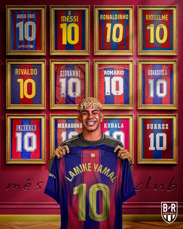 7月17日讯 官方消息,亚马尔将在下赛季起身披巴萨10号。在上一任巴萨10号主人法蒂外租离队后,亚马尔接过了这一意义重大的号码。在巴萨历史上,梅西、小罗、马拉多纳等传奇都曾身穿这一号码。